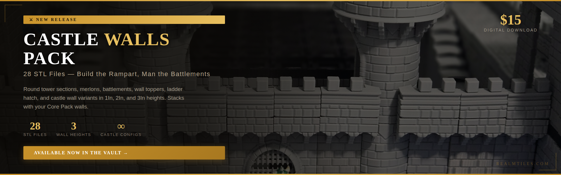 Modular 3d Printable terrain for D&D & tabletop RPGs. No Walls on Tiles, Walls anywhere. Print-in-place doors. Stackable towers. Built for real play. Ready to use right off the printer.